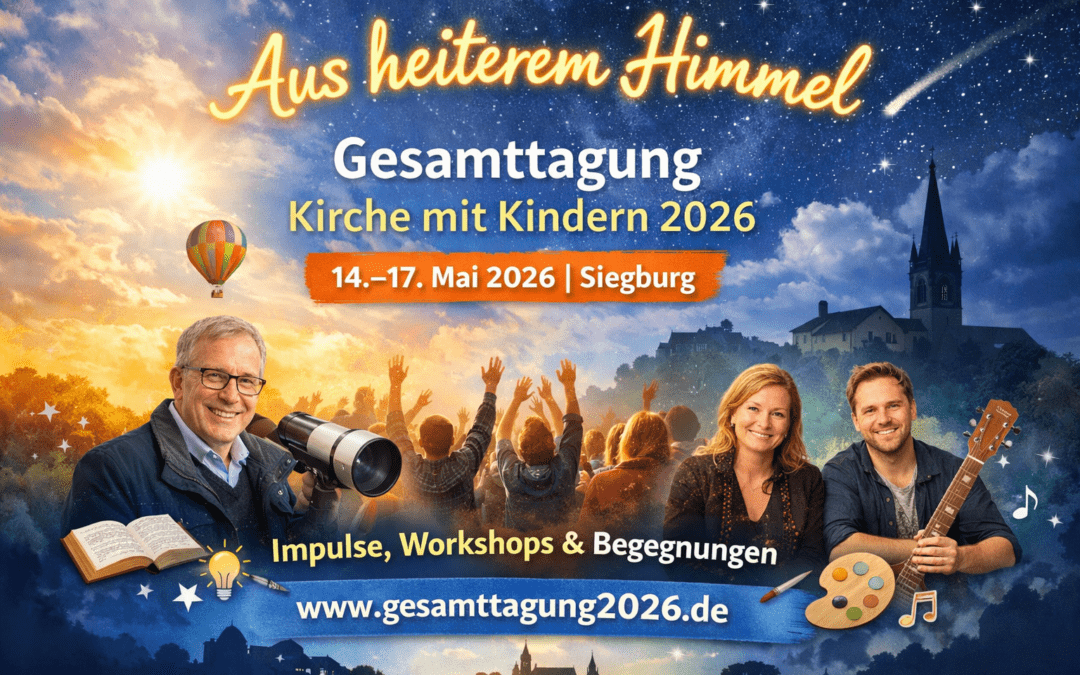 Vom 14. bis 17. Mai 2026 wird Siegburg zum Treffpunkt für alle, die sich in Kirche und Gemeinde für Kinder engagieren. Unter dem Motto „Aus heiterem Himmel“ lädt die Gesamttagung „Kirche mit Kindern“ zu inspirierenden Tagen voller Begegnung, Austausch und neuer Impulse ein. Die Veranstaltung richtet sich an Haupt- und Ehrenamtliche aus dem ganzen Bundesgebiet und bietet ein vielseitiges Programm: Bibelarbeiten, Workshops, Vorträge, kreative Formate sowie kulturelle Highlights am Abend.